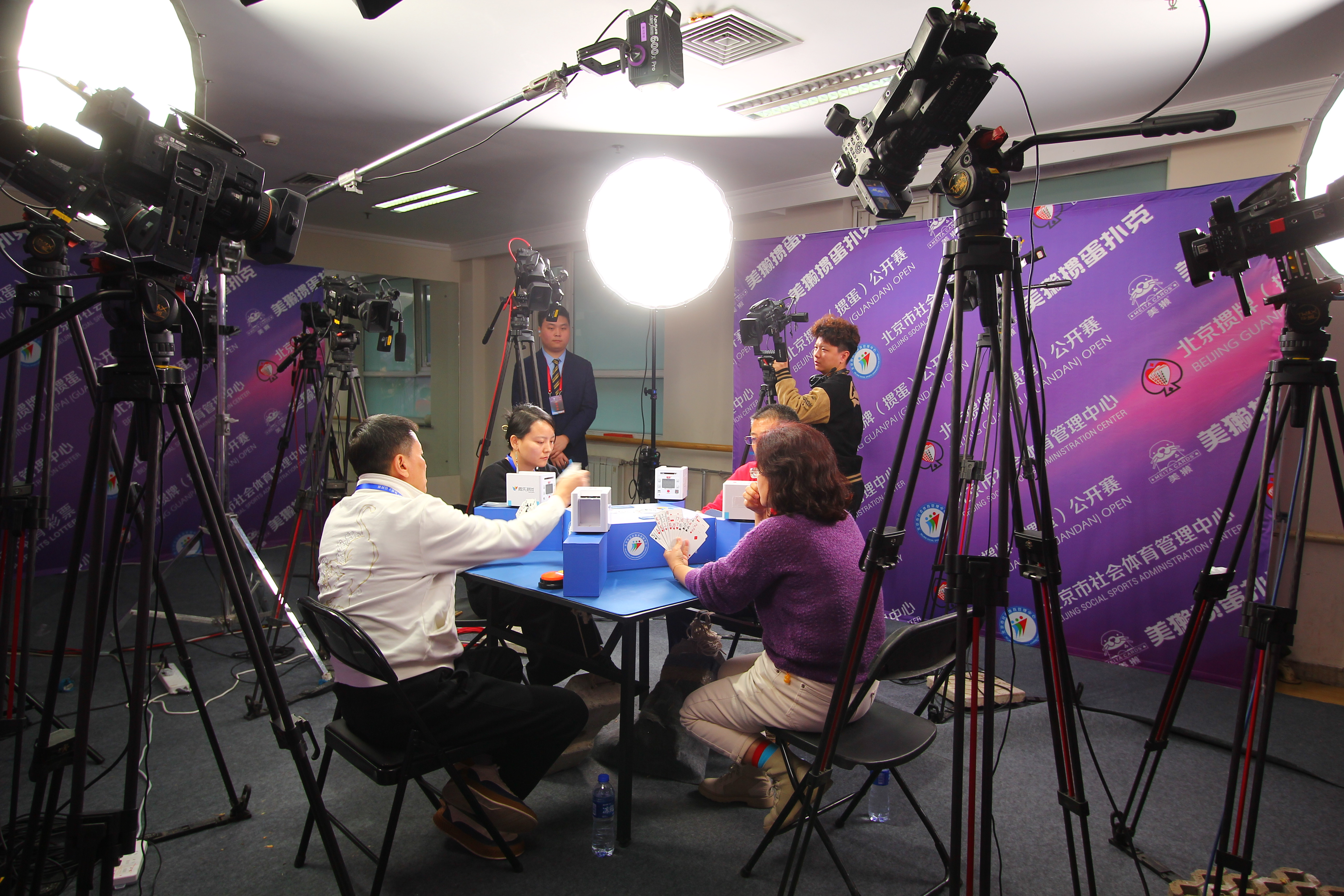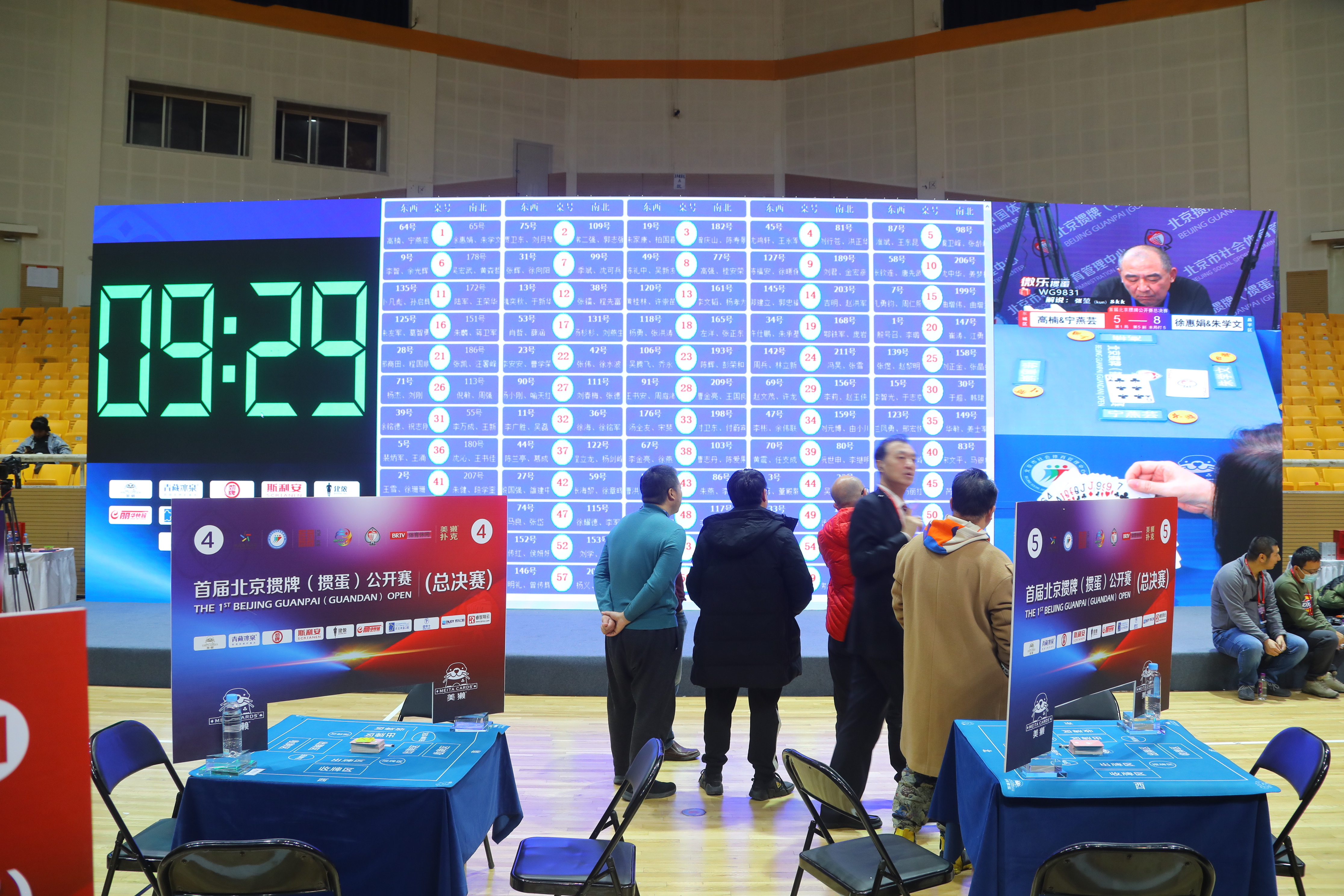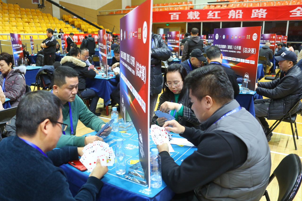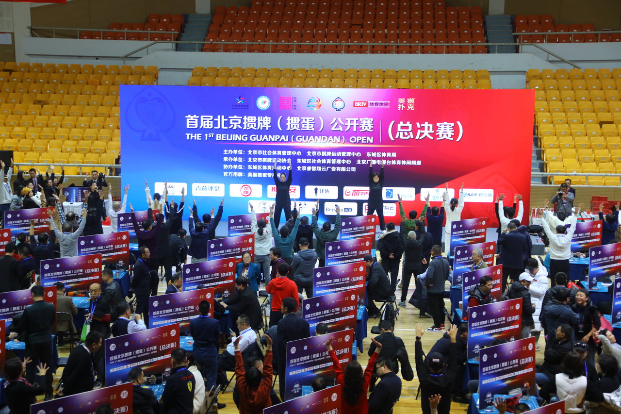 在比赛现场,200余支队伍两两对阵争夺积分,牌友们相互交流,赛事氛围非常热烈,总决赛通过抖音、微信小程序等平台进行直播,网友们可以通过“体育北京”“微乐掼蛋大师赛”等账号一睹决赛高手对决。此外组委会在赛事期间安排了魔术、杂技等表演,以多变的娱乐性调节比赛紧张的氛围,在比赛间隙,还安排社会体育指导进行健身气功八段锦的习练,让参赛选手在比赛之余调整体态。